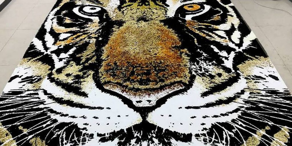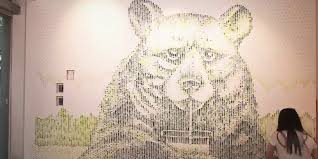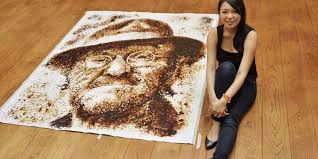 A artista recriou o rosto do ator Jackie Chan usando 64 mil hashis em 2014.