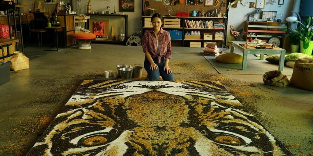 A artista malaia Hong Yi, conhecida como Red, moradora de Xangai, na China, formada em design e arquitetura, na Austrália, utiliza diferentes materiais para compor suas obras. A matéria-prima, geralmente, faz parte do cotidiano e pode ser encontrada facilmente no mercado. Alguns materiais como talos de aipo, hashis (palitinhos asiáticos), cebolas, sementes, café, saquinhos de chá, entre outros são usados na sua produção artística.