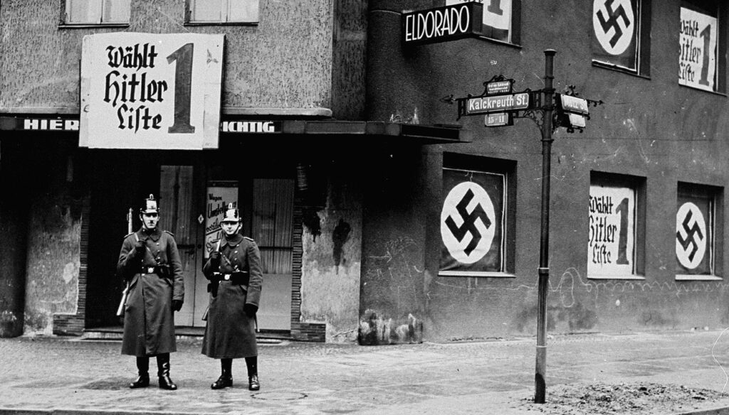 Quando Hitler assumiu o cargo de Chanceler, em janeiro de 1933, a Alemanha ainda possuía todos os elementos formais de uma democracia: uma constituição em vigor, um parlamento eleito, tribunais funcionando e uma imprensa livre. Não houve, naquele primeiro momento, a imagem cinematográfica de um golpe abrupto que dissolve tudo de uma vez. Entretanto, no espaço de alguns poucos meses, cada uma dessas instituições tinha sido forçada à submissão ou completamente eliminada. O incêndio do Reichstag forneceu o pretexto para decretos emergenciais; a Lei de Plenos Poderes transferiu autoridade legislativa ao Executivo; partidos foram proibidos sob justificativas legais; juízes foram pressionados, substituídos ou cooptados.